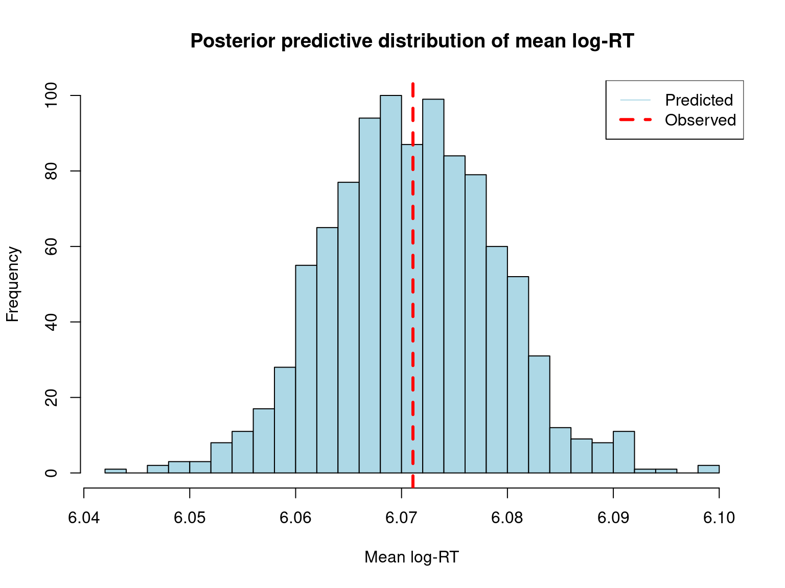 p1 <- pp_check(fit_rt, type = "stat", stat = "mean") +